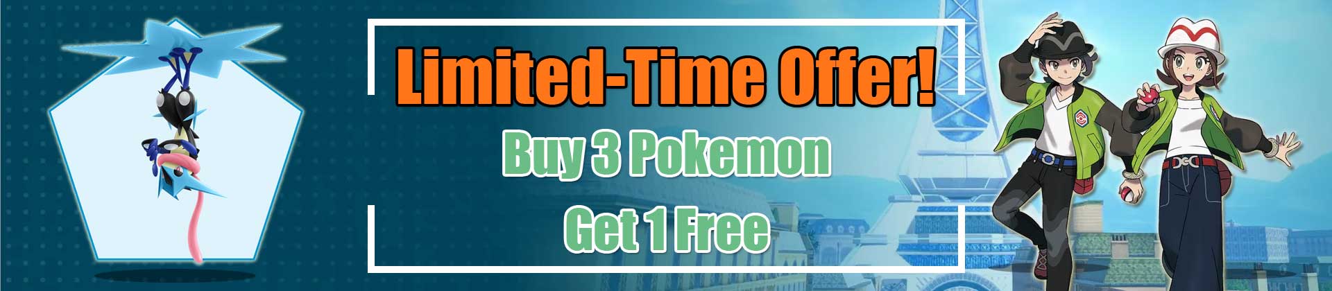 Special Offer: Buy three pokémon, get one free! Choose any pokémon you like! Use 8% Discount Code: POKE8